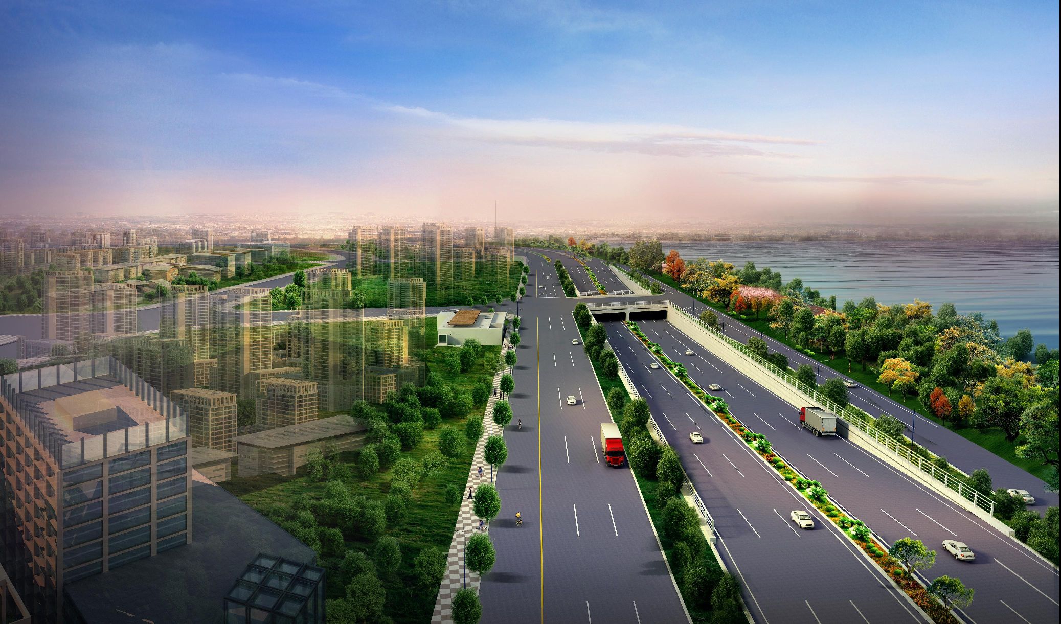 快速路和輔道根據現場采用綠化帶進行調節,路幅寬度50m-60m。項目建安投資預計10.18億元。